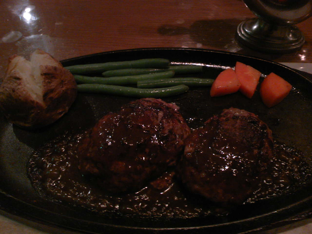スープは温い、ハンバーグは味気無い、ソースもコクが無い。
